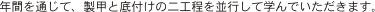 年間を通じて、製甲と底付けの二工程を並行して学んでいただきます。