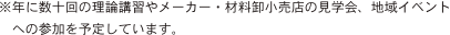 ※年に数十回の理論講習やメーカー・材料卸小売店の見学会、地域イベントへの参加を予定しています。