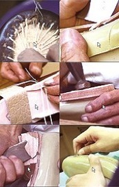 本底の縫い付け工程です。底付け用の針とチャンをしみ込ませた糸でしっかりと縫い付けていきます。