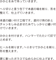 ヒールを削ります。へりきりでかかとを削り、形を整えます。