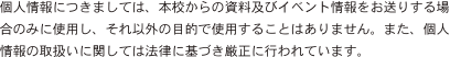 個人情報につきましては、本学院からの資料及びイベント情報をお送りする場合のみに使用し、それ以外の目的で使用することはありません。また、個人情報の取扱いに関しては法律に基づき厳正に行われています。