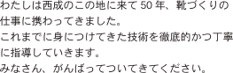 わたしは西成のこの地に来て50年、靴づくりの仕事に携わってきました。