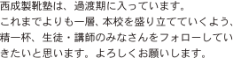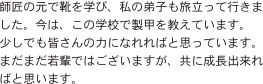 師匠の元で靴を学び、私の弟子も旅立って行きました。今は、この学校で製甲を教えています。