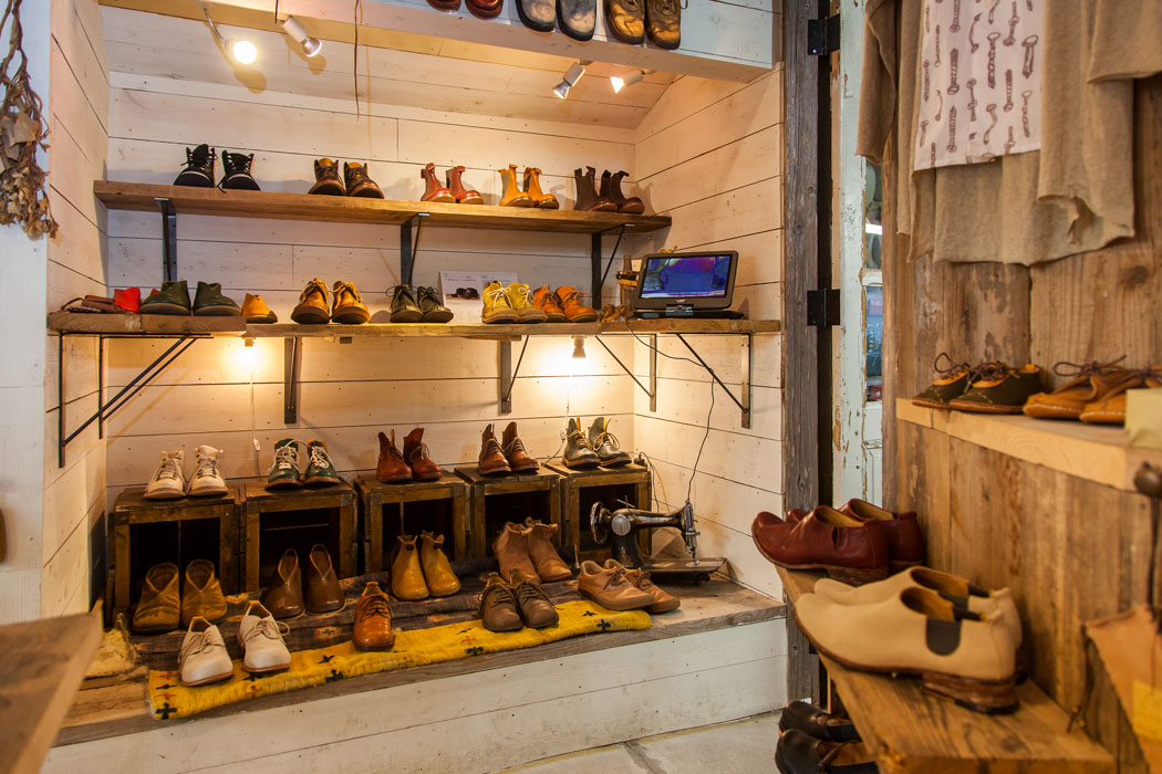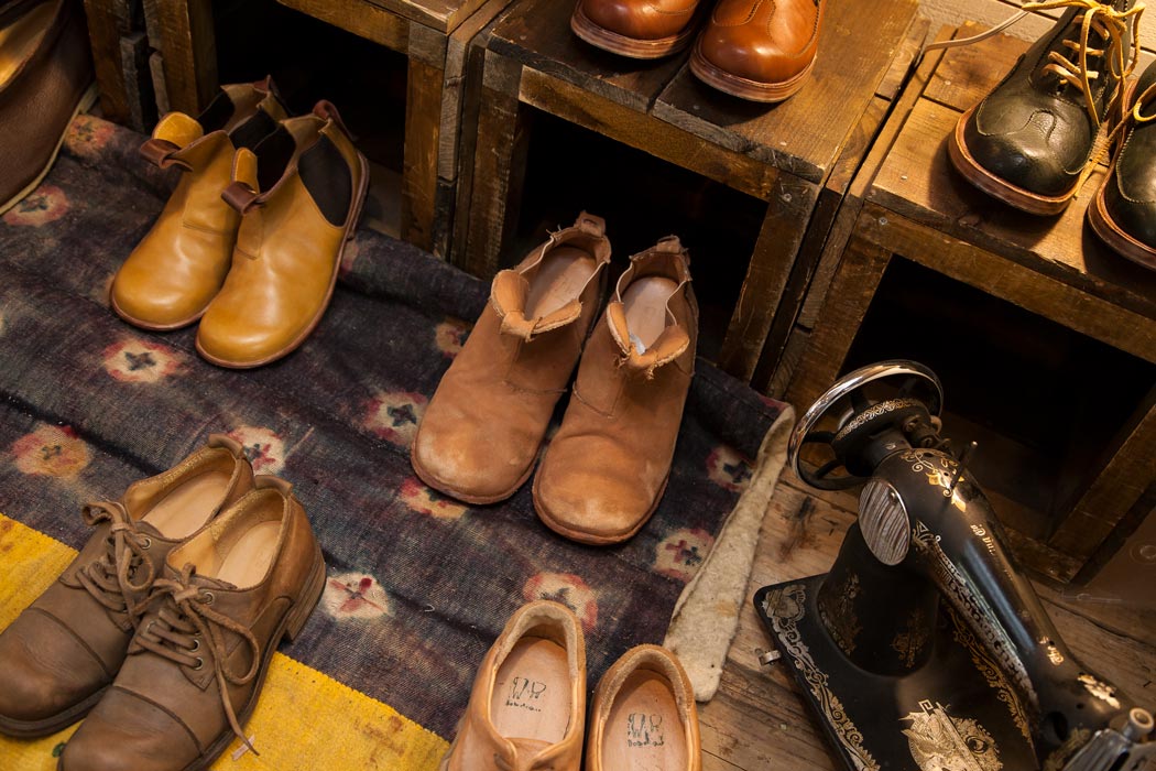 10年やってようやく気づいたのは、kokochi ってブランドは僕でしかないんだなってこと。いわゆる僕の分身というか。それが僕が一番気持ち良くって、お客さんも気持ち良かったりするんですよ。なので店を見ても、モロッコのラグとチベットのラグがあって、表にはメキシコ風のカブが止まっててっていう無国籍。ひとつにカテゴライズされないものを、吸収して、咀嚼して、そして出したもんが自分の作品やと思うんで、コンセプトというと、そういうことかなって。コンセプトがないのがコンセプト。ーどんな風に靴作りをされているんでしょうか。